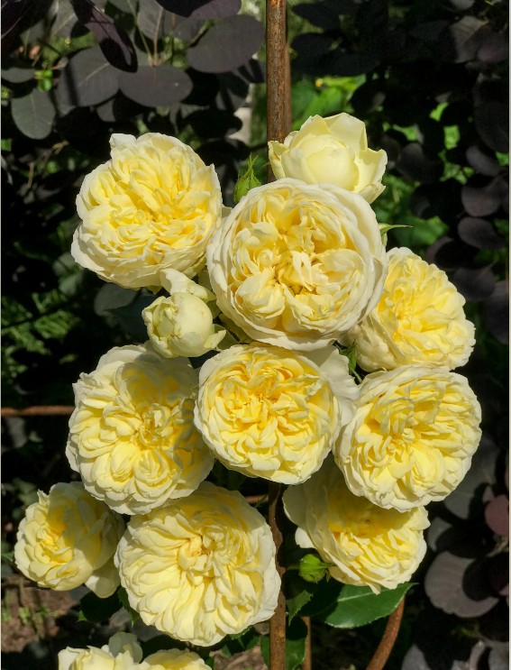 Роза Пилигрим станет идеальным украшением для ажурных решеток пергол, киосков, беседок, входных групп или арочных проходов. Её округлые бутоны желтого цвета превращаются в чашевидные цветки, окрашенные в палитру бледных желтых оттенков: от сливочных и кремово-белых на внешних лепестках до медовых в центре. Благодаря такой игре полутонов цветок кажется подсвеченным изнутри. Некрупные (6-8 см) густомахровые бутоны состоят из огромного количества тончайших, шелковистых, слегка закрученных мелких лепестков (от 80 до 150-170). Цветки могут располагаться на стебле одиночно или в соцветиях из 1-3 бутонов. Роза обладает изысканным ароматом средней силы, напоминающим чайную розу с нотками пряностей и мирры.