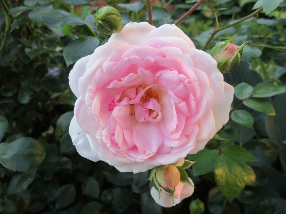Канадская парковая роза Морден Блаш (Morden Blush) – это великолепный сорт, который радует обильным и повторным цветением. Цветки этой розы имеют нежный бледно-розовый оттенок с темно-жемчужно-розовыми мазками в центре и кремово-белыми краями. В холодную погоду цветки становятся более насыщенно розовыми. Махровые цветки, состоящие из множества мелких, изогнутых лепестков, напоминают чайно-гибридные розы. Они могут появляться как по одному, так и в кистях до 6 штук. Размер цветка составляет 5-6 см. Листва темная и блестящая, что придает кусту дополнительную декоративность. Высота куста достигает 80-100 см, а ширина – около 60 см. Роза цветет обильно и продолжительно до первых морозов. Устойчивость к мучнистой росе и черной пятнистости средняя. Зона зимостойкости – 4 (до -35ºС).