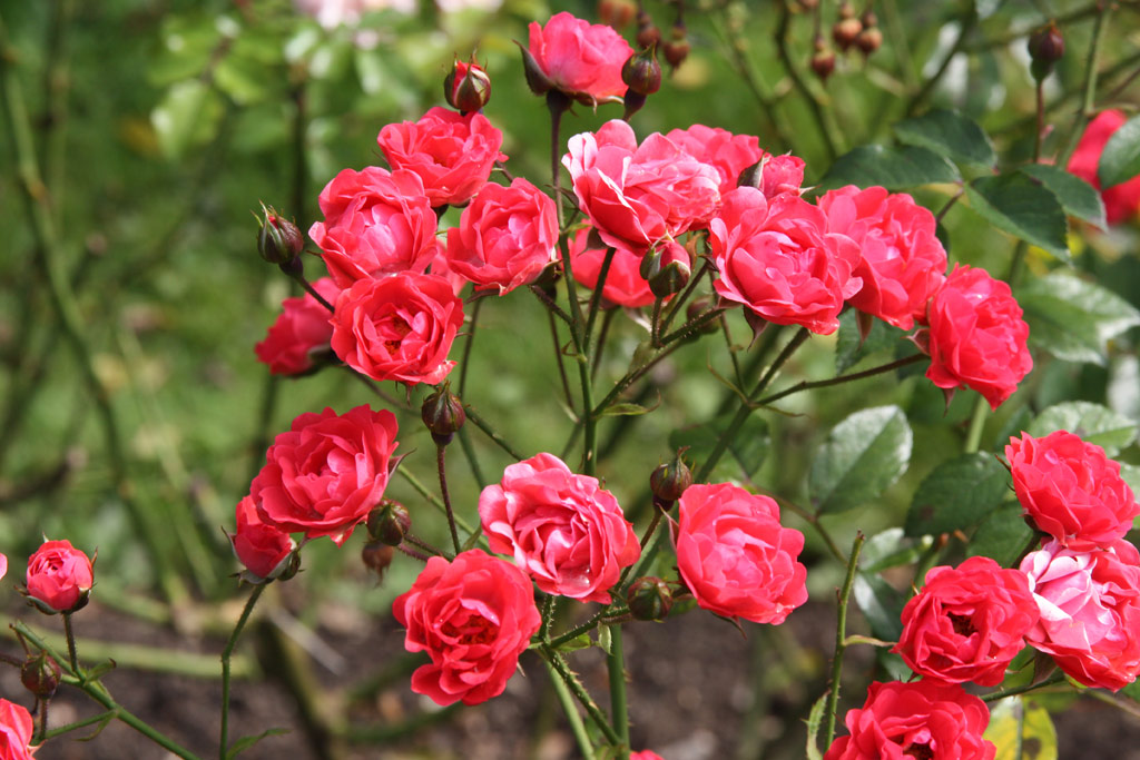 Эти розы привлекают внимание своим ярким, словно светящимся цветом и густомахровыми цветками, каждый из которых может содержать до 60 лепестков. Мягкий аромат добавляет им особого шарма. Цветки часто собраны в пышные соцветия, состоящие из 10-50 цветков, что создает впечатляющий декоративный эффект. Темно-зеленая, глянцевая листва служит отличным фоном для их яркого цветения.