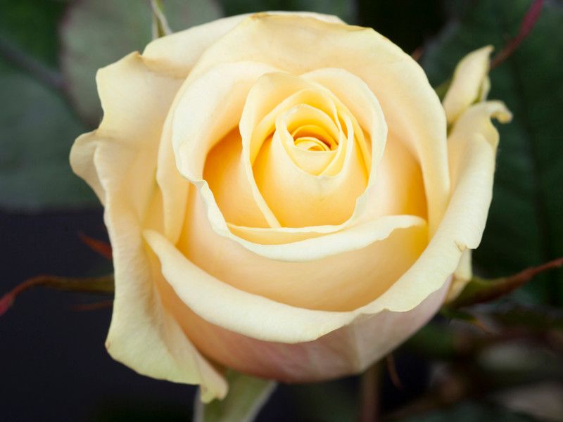 Роза Талея (Talea) – это изысканный сорт чайно-гибридной розы, который привлекает внимание своим нежным кремовым цветом с легким розовым оттенком в центре бутона. Плотные, кожистые лепестки аккуратно уложены в высокий бутон, а их края переливаются кремовыми и зелеными оттенками, придавая цветку игривость и загадочность. Едва заметный розовый отлив у основания лепестков добавляет цветку праздничный вид.